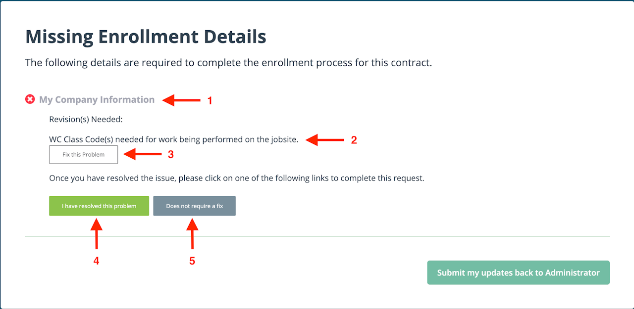 Make any necessary updates to the information, then click the “Continue” button to return to the Missing Enrollment Details page.