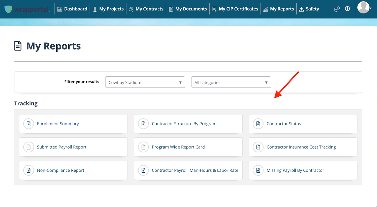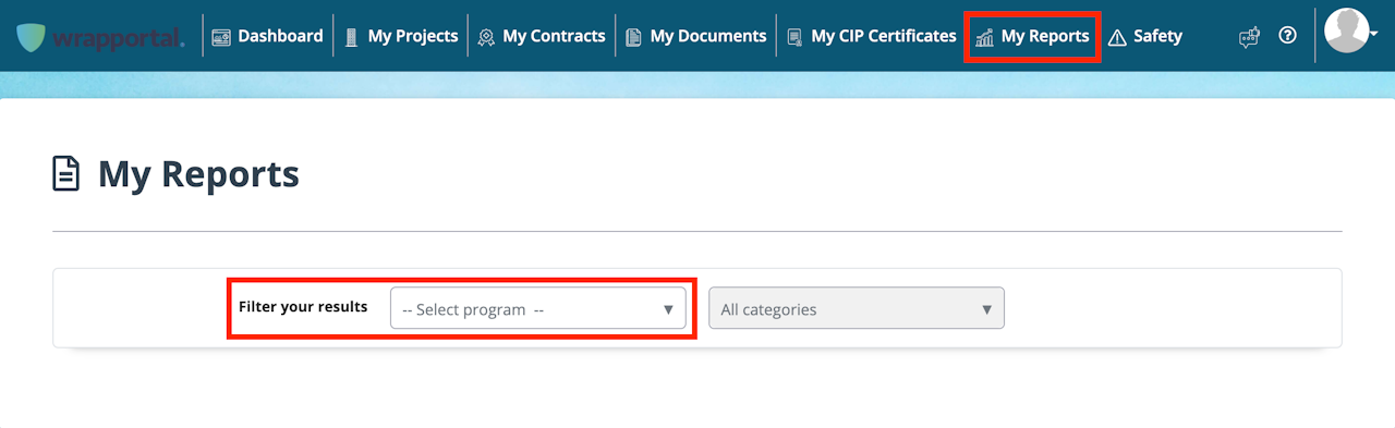 Go to the "My Reports" tab to run reports for your programs and projects. Select a program from the drop-down to view the reports that are available for the selected program.