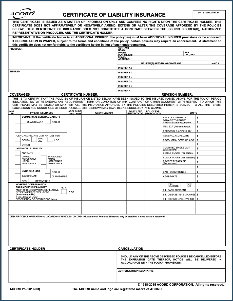 The non-CIP policy information you will enter is found on your policy documents or on your company’s insurance certificate, which may look like the sample in this image. You will need this document on hand to complete this section of the enrollment process.