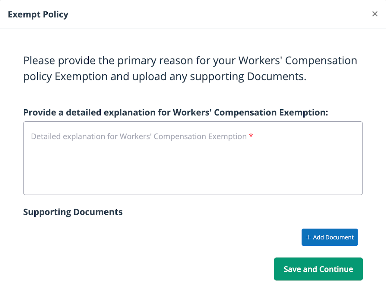 If you are exempt from a specific policy, use the “Request an Exemption” button and explain the reason for your exemption. Upload any documents that the administrator will need in order to approve your exemption from the policy.