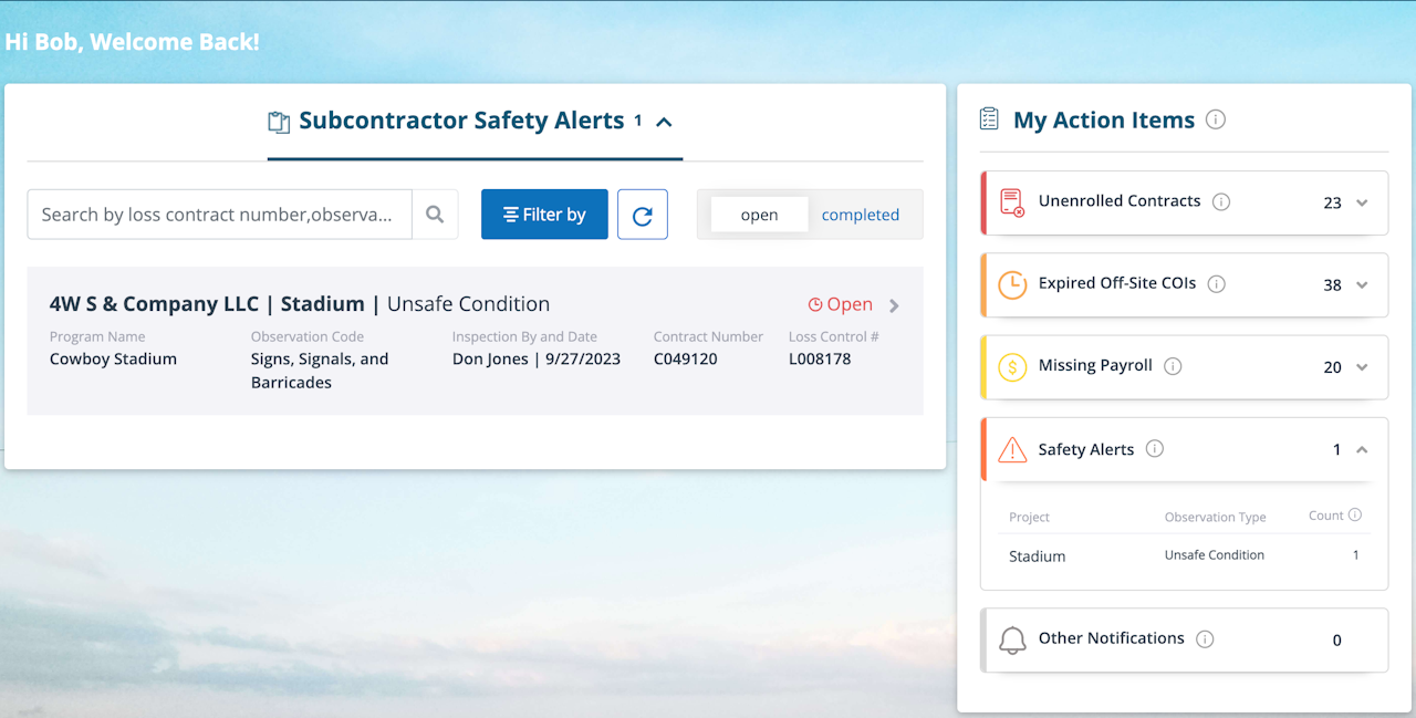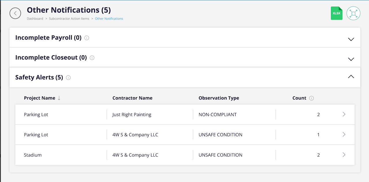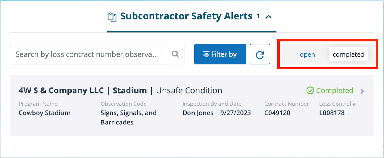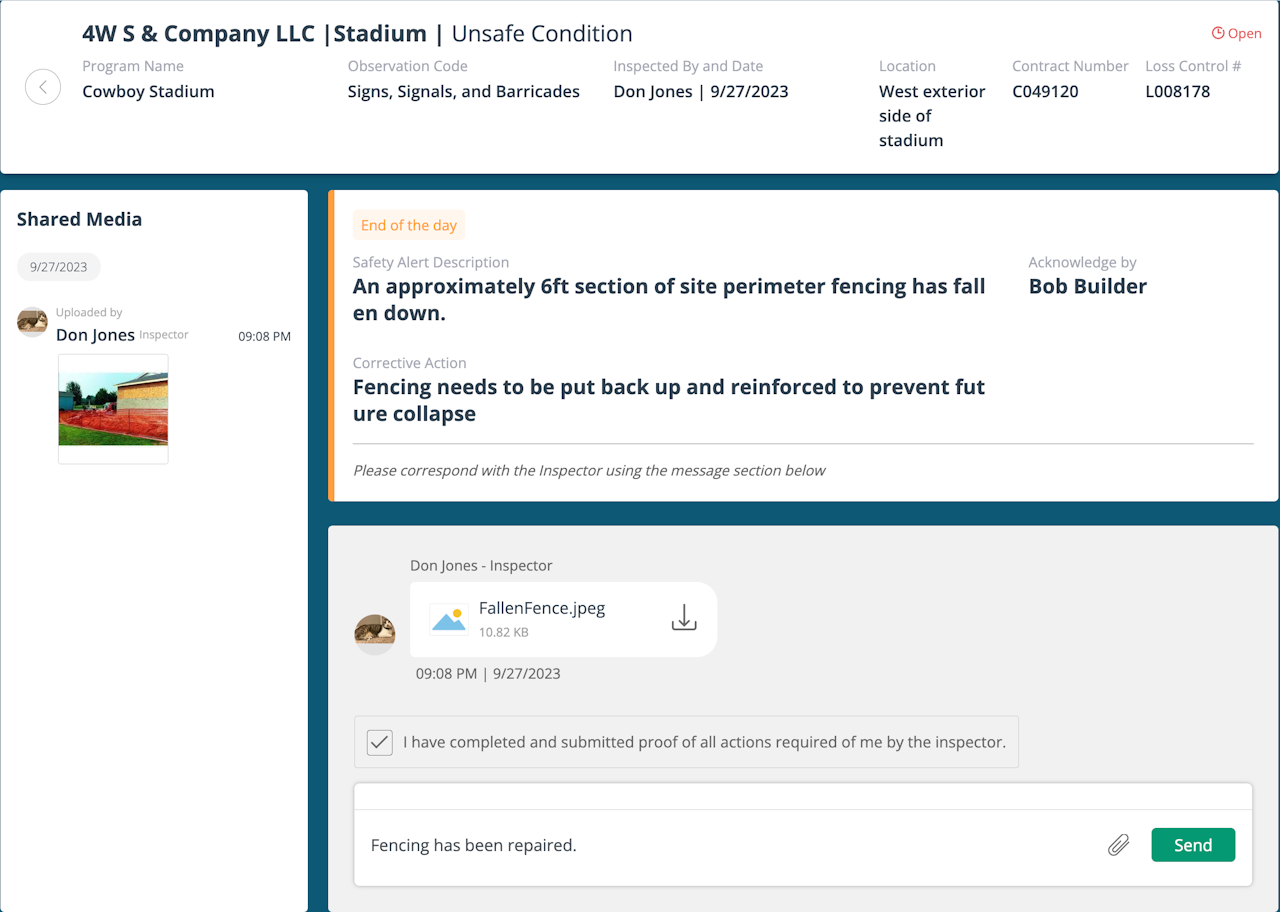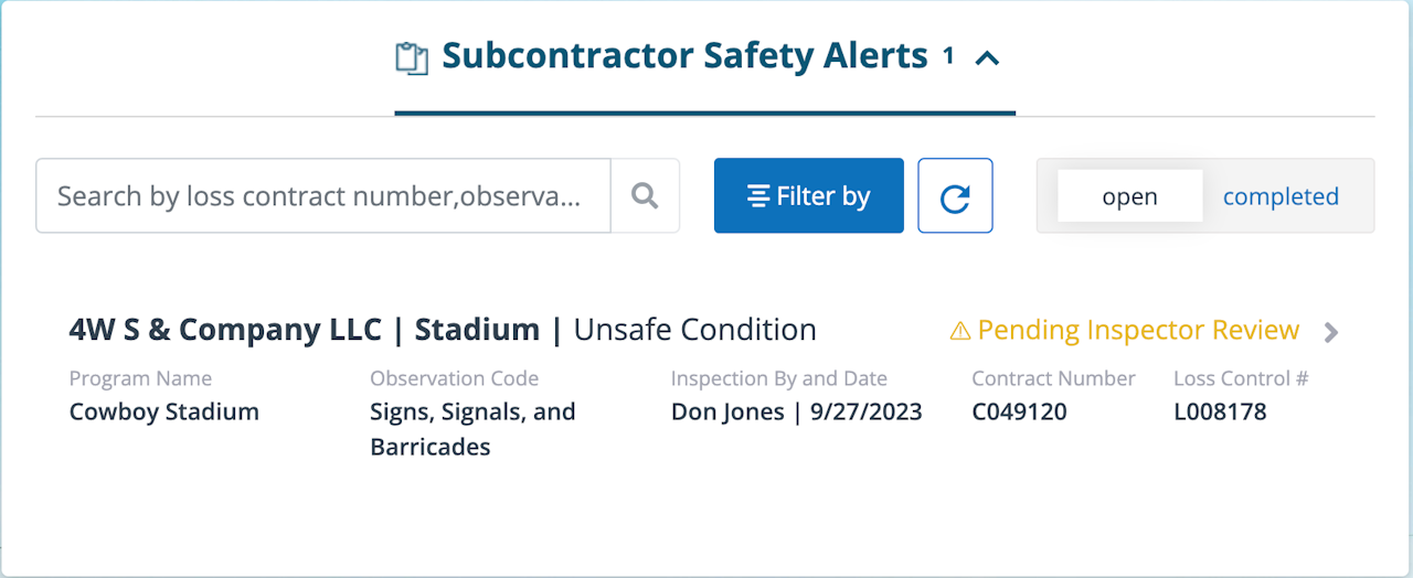 When you click on a safety alert, you will be redirected to the Safety tab where the inspection observation(s) will appear.
